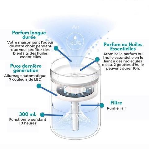Environnement Parfumé : Créer l’ambiance que vous aimez avec seulement 2 gouttes de votre parfum. Vous vous sentez mieux et profitez d’un environnement 5 Étoiles chez vous.