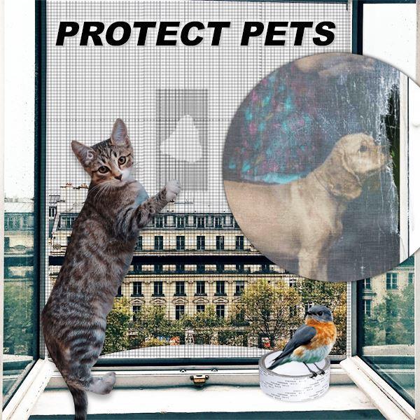 Un ruban en fibre de verre durable, conçu avec une performance adhésive longue durée qui restera longtemps à la surface de votre fenêtre ou de votre moustiquaire de porte. Il ne se décollera pas et ne s’endommagera pas, même par mauvais temps ou par vos hyper animaux de compagnie !