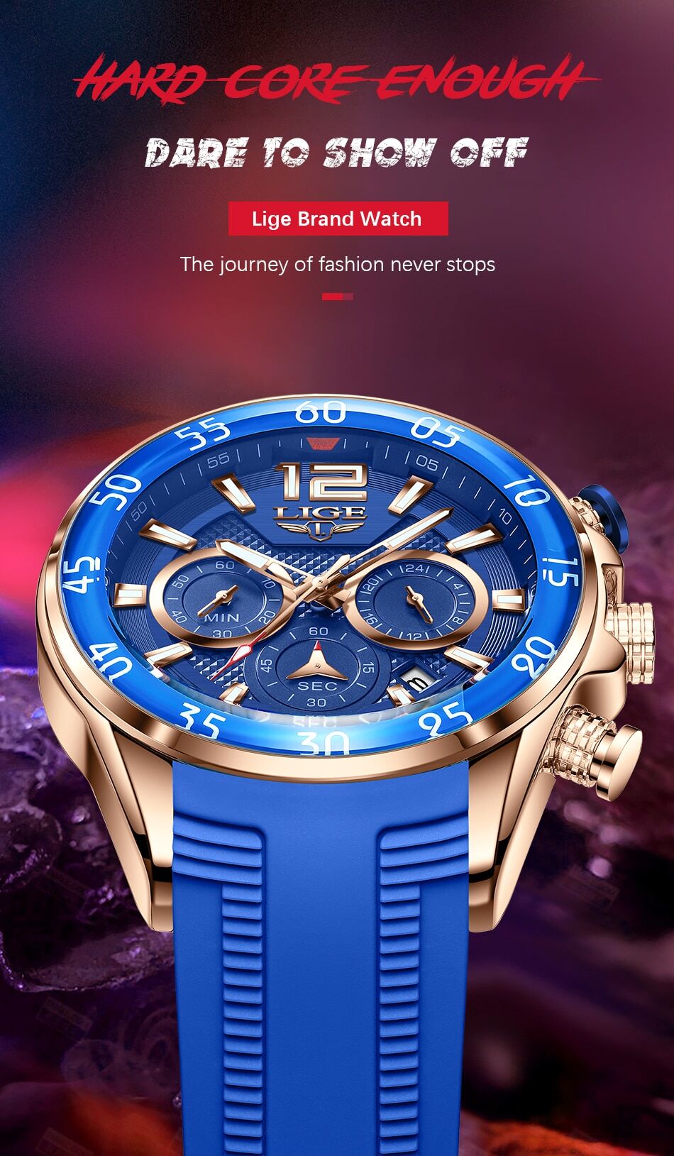 Montre homme bracelet silicone à quartz chronographe sport – boreal