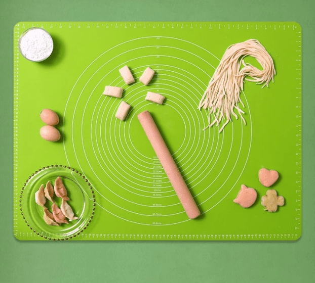 Il est tout simplement parfait pour faire tout votre pétrissage, rouler et couper, de sorte que votre espace de travail reste propre partout. Le nettoyage est absolument facile beaucoup plus facile que le nettoyage de votre comptoir. Lavez simplement à l’eau tiède et vous avez terminé.