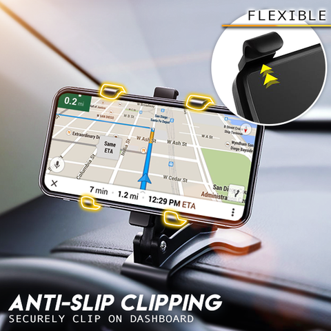 Comprend un clip solide qui se fixe solidement au tableau de bord / à toute surface plane.