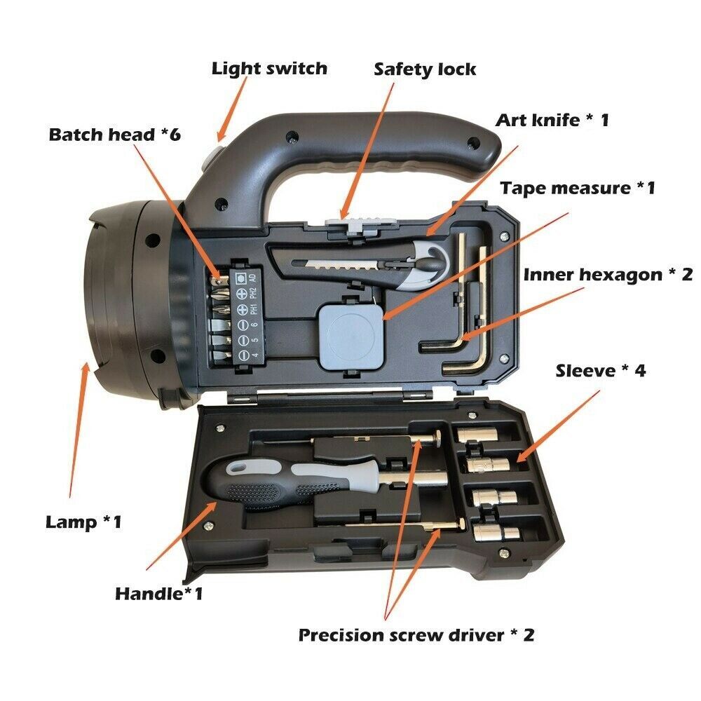 - Emballage inclus: 1 pièces * boîte à outils de lampe de poche