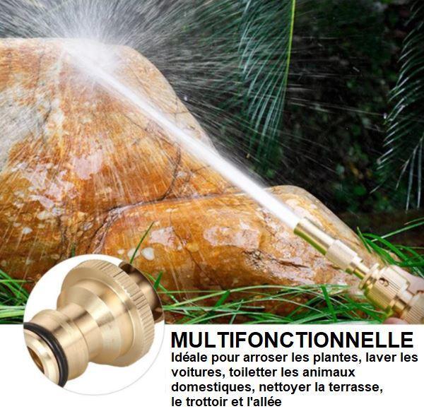 Buse de pression d’eau polyvalente et efficace. Idéale pour arroser les plantes, laver les voitures, faciliter le toilettage des animaux domestiques, nettoyer les canalisations, la terrasse, le trottoir et l’allée.