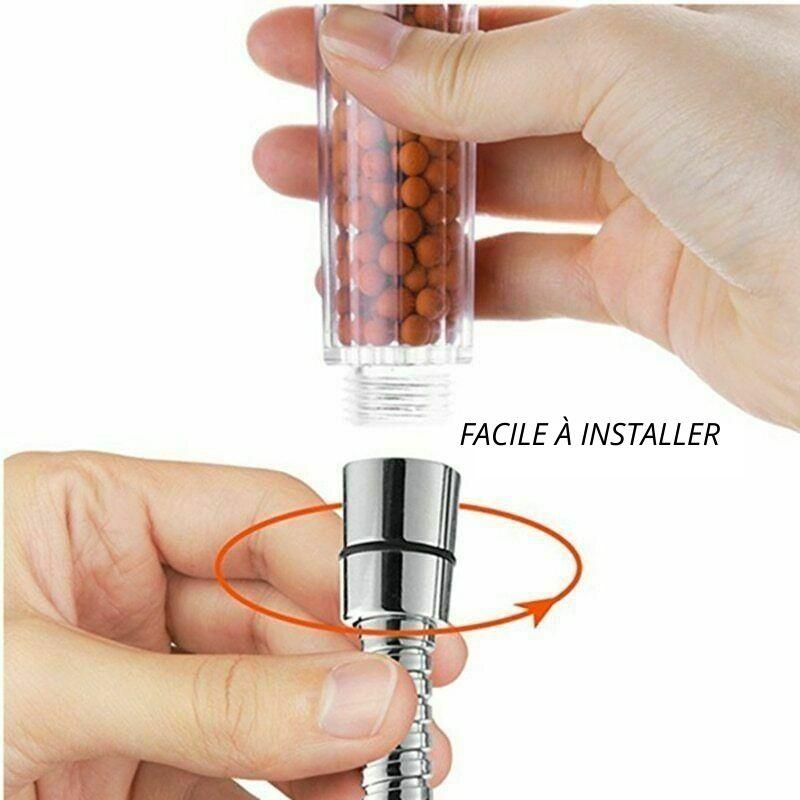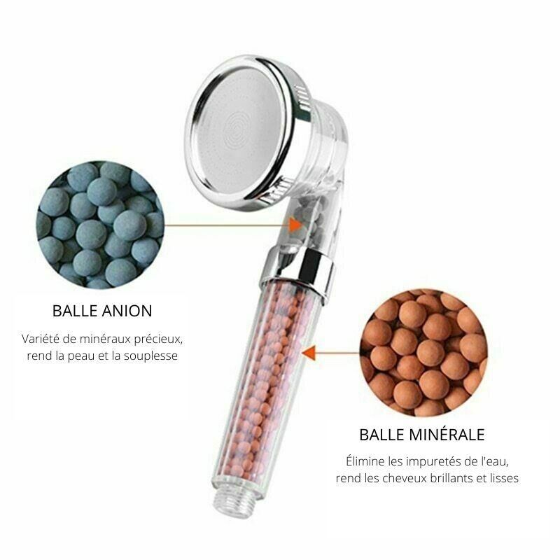 - Technologie aux ions négatifs : Adoucit et purifie l’eau de la douche pour éliminer la peau sèche et squameuse. Rendez votre peau et vos cheveux plus lisses et plus doux.
