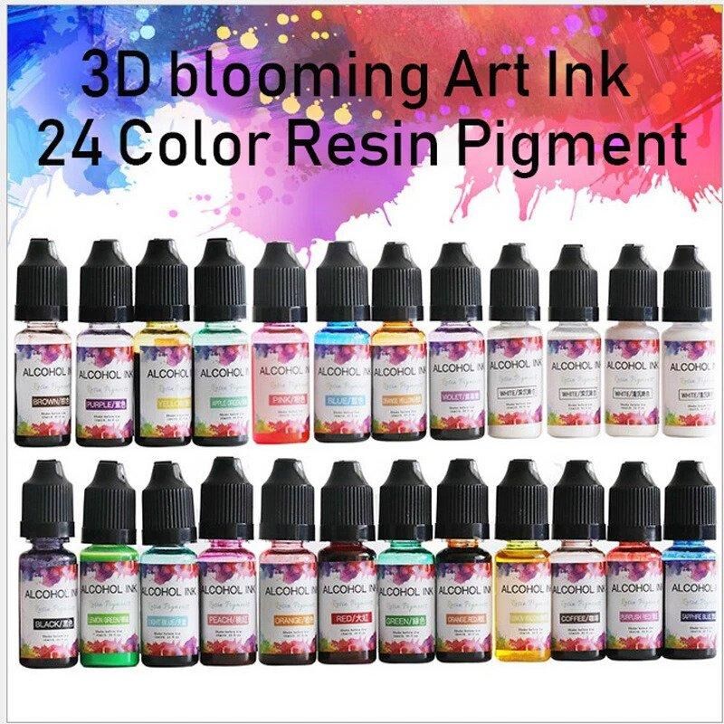 Kit de pigments en résine époxy, 24 couleurs encre d’art colorant pour la fabrication de bijoux et moule