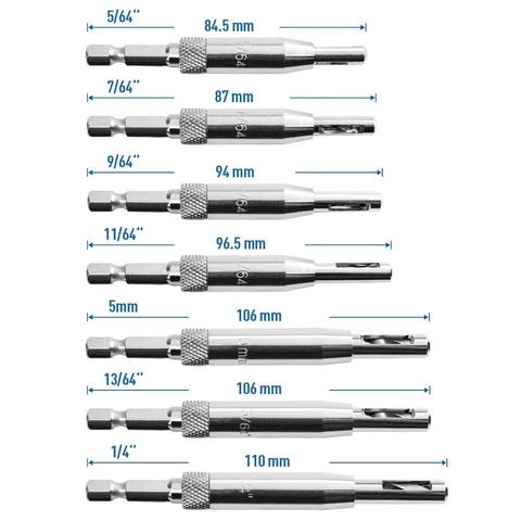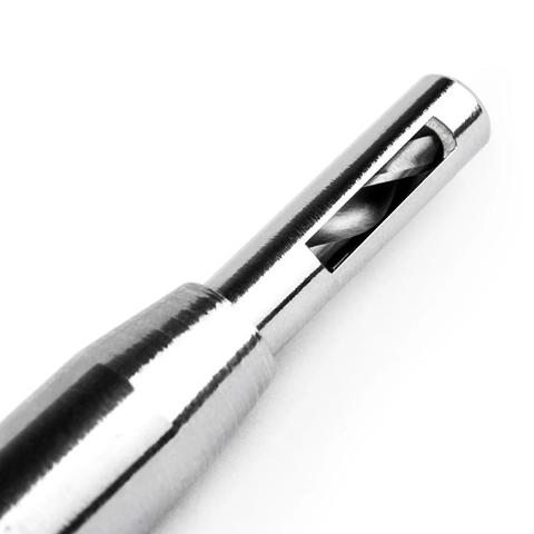 Le guide externe à ressort avec tête chanfreinée maintient la perceuse à grande vitesse centrée pour des trous pilotes parfaits.