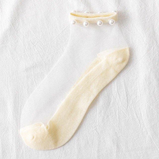 Paire de chaussettes fines perlées en fibre de verre transparente pour femmes