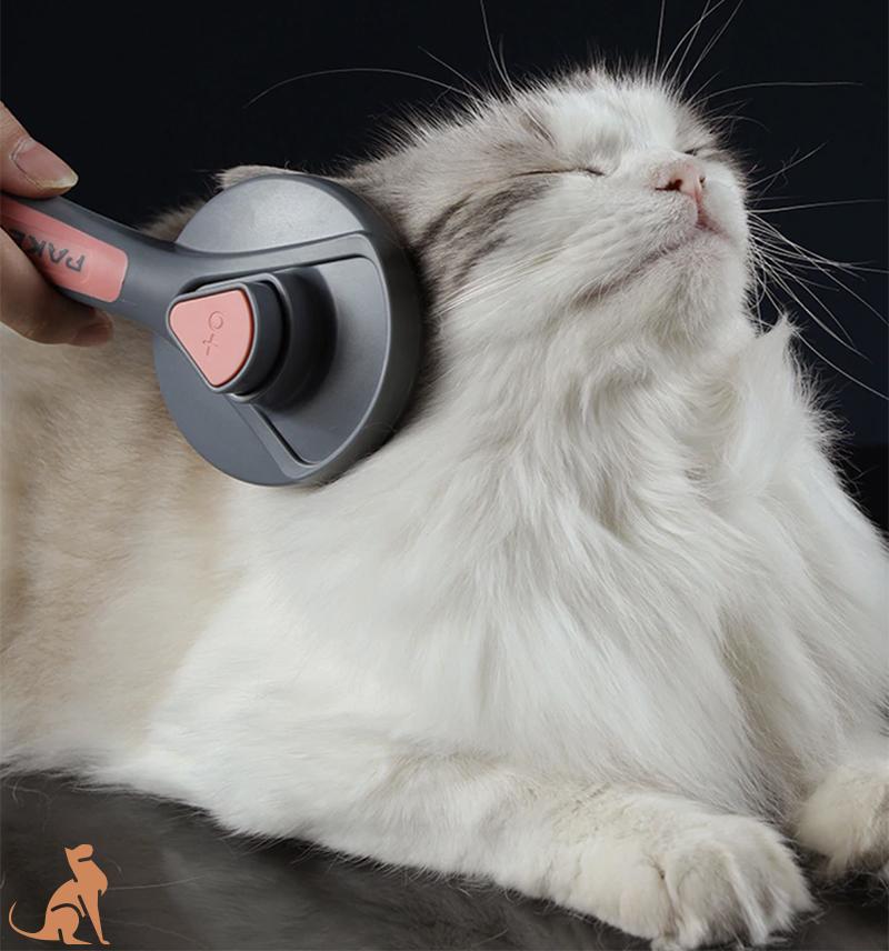 Imaginez votre chat se laissait brosser en ronronnant avec une brosse auto-nettoyante qui se nettoie en un coup d’œil !