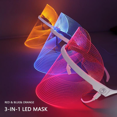 Masque facial de luminothérapie LED 3 couleurs pour rajeunir et éliminer les rides et l’acné.