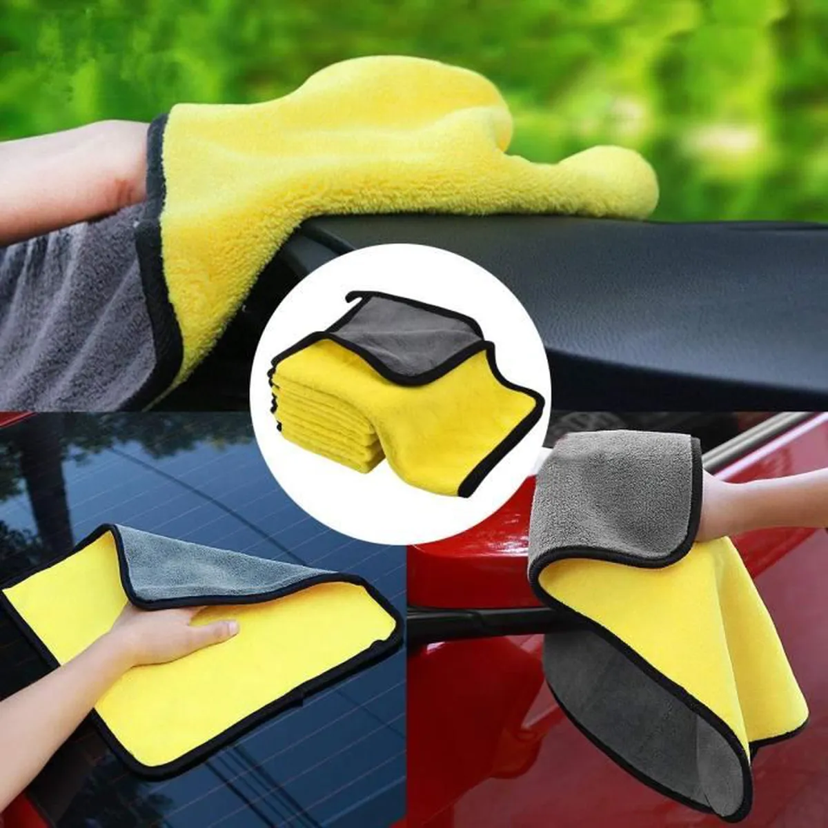 Lingettes en microfibres pour la voiture, ultra absorbantes, à séchage rapide, réutilisables pour le nettoyage de la voiture, le polissage ou l’usage domestique