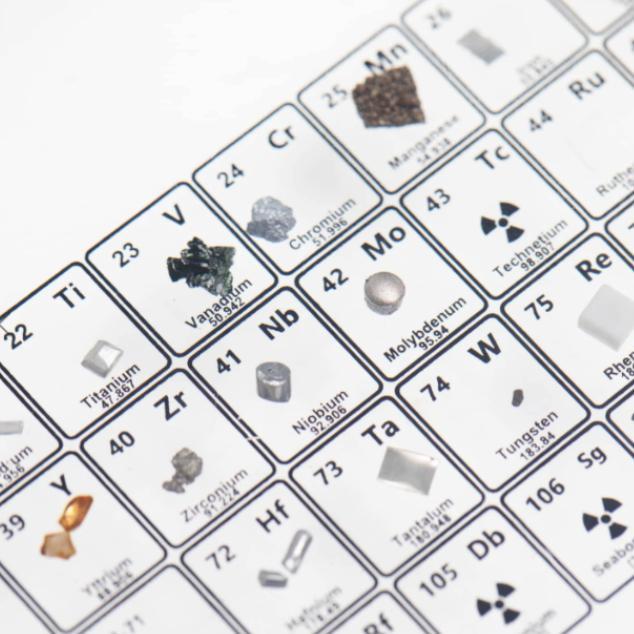 • Éléments réels : la collection de 83 éléments individuels d’Atomica™ a été délibérément coupée, usinée, fondue, puis scellée pour le plus grand plaisir des curieux de découvrir tous ces éléments.