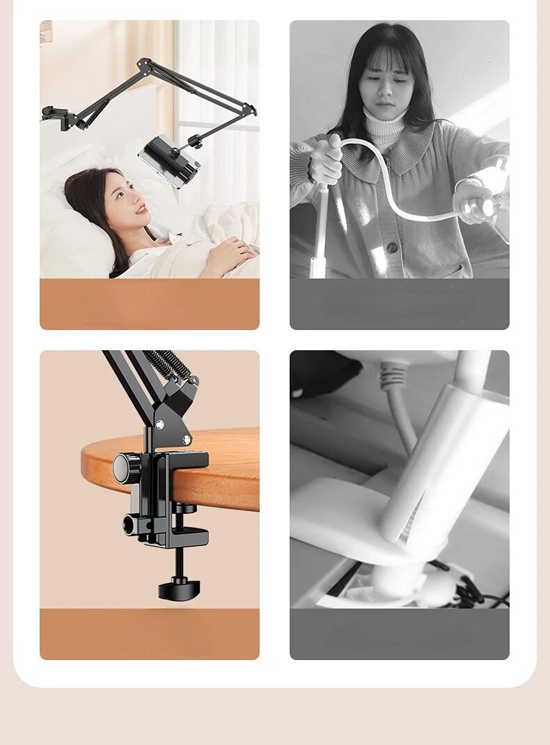 Ce support pour téléphone portable est réglable sur 360 degrés, avec un long bras flexible en col de cygne, ce qui permet de l’ajuster facilement à l’angle de vision le plus confortable. Pratique et flexible !