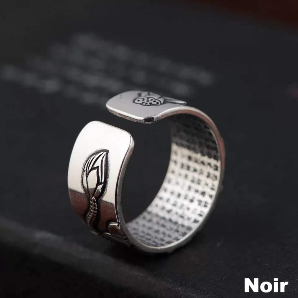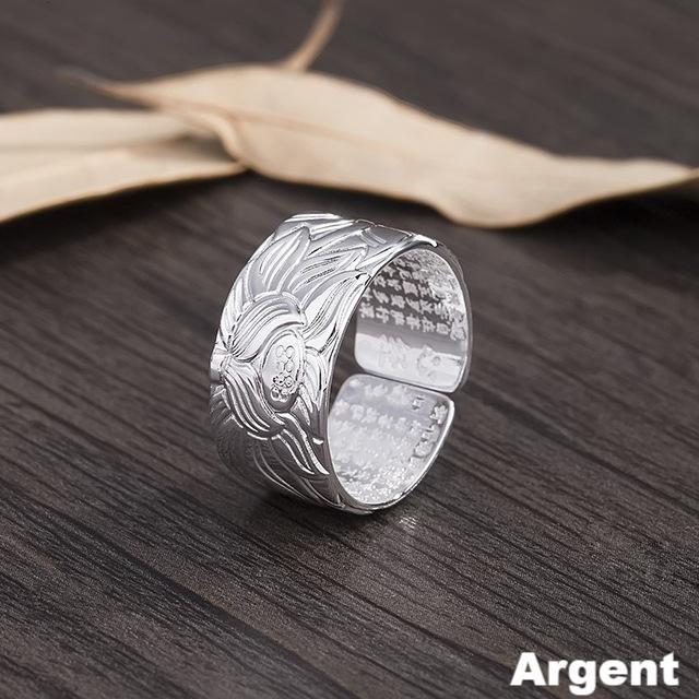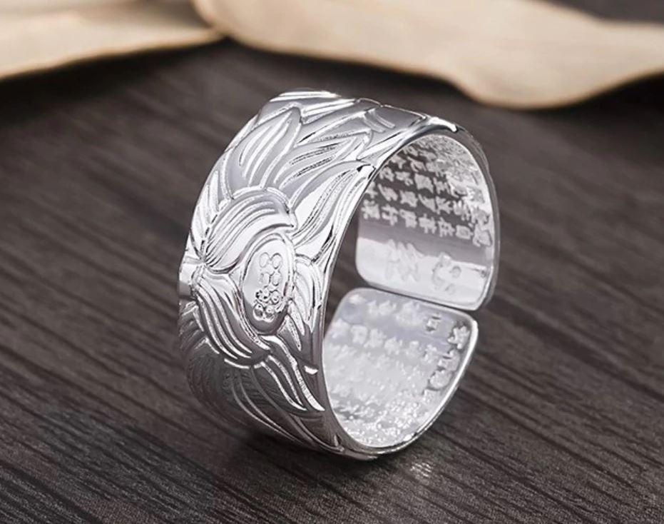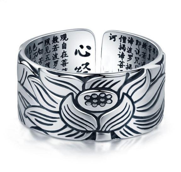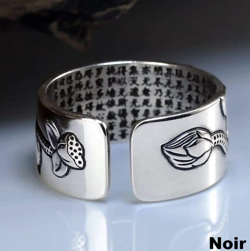 Sur l’intérieur de la bague vous verrez le sutra du cœur, c’est un extrait du sutra du lotus. Il contient des enseignements de Bouddha. C’est l’un des sutras les plus populaires.