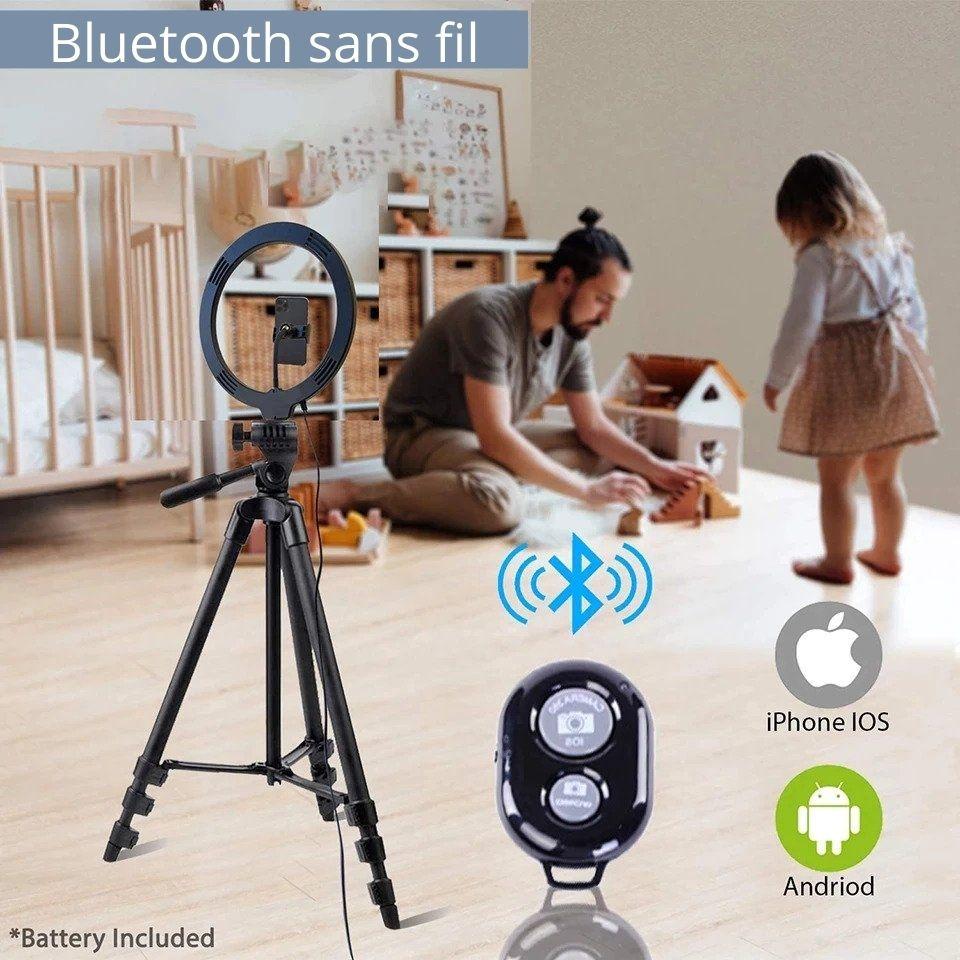 Anneau lumineux à LED de diamètre 26cm pour selfie avec support trépied, éclairage contrôlé à distance par Bluetooth, parfait pour photo, vidéo et live Youtube.