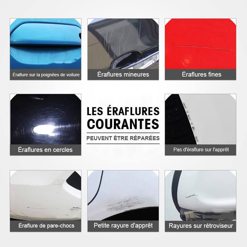 Le kit anti-griffes vous permet de réparer les rayures de votre voiture facilement et en quelques secondes ; c’est un puissant produit de polissage qui permet d’éliminer les imperfections sans abîmer la peinture.