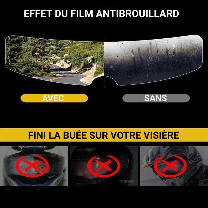 - VISION CLAIRE – Protection anti-buée efficace pour casque de moto. Offre une vision claire et nette par temps de pluie ou de brouillard, pour une conduite plus sûre.
