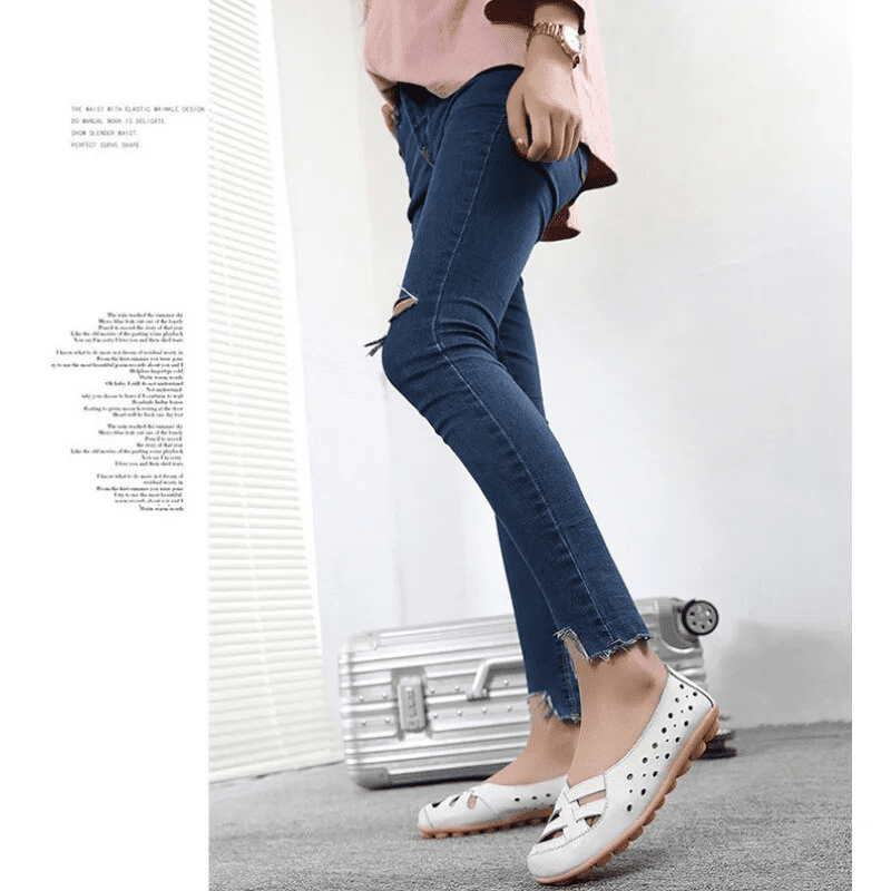 Ces ballerines sont conçues pour épouser parfaitement la forme de votre pied, grâce à un cuir souple et respirant qui s’adapte à vos mouvements sans créer de points de pression. Leur semelle intérieure est souvent rembourrée avec un support de voûte plantaire, offrant une base confortable même après de longues heures de port. Leur conception sans talon réduit la tension sur les pieds, les chevilles et le dos, faisant de ces chaussures un choix idéal pour celles qui privilégient le confort et la santé du pied.