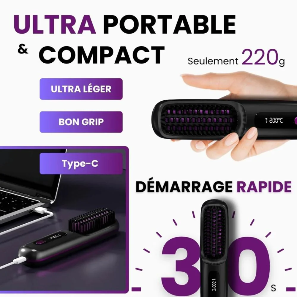 Simplifiez votre routine beauté avec cette brosse lissante qui allie performance, sécurité et praticité. Gagnez du temps tout en prenant soin de vos cheveux.