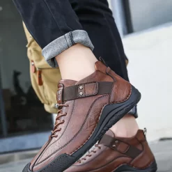Bottes décontractées en cuir antidérapantes cousues main pour homme Élégantes