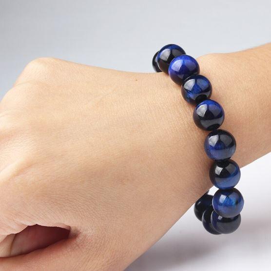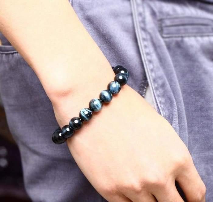 Ce magnifique bracelet en Œil de Faucon est composé de plusieurs perles. La luminosité chatoyante de l’œil de Faucon est due à la réflexion de la lumière sur sa structure fibreuse.