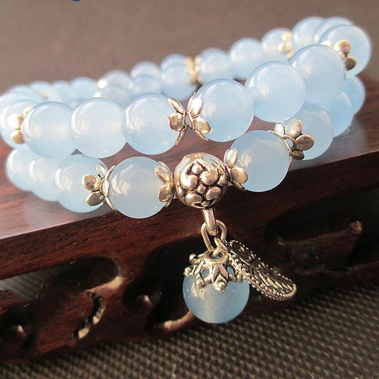Bracelet tibétain porte bonheur en cristal bleu