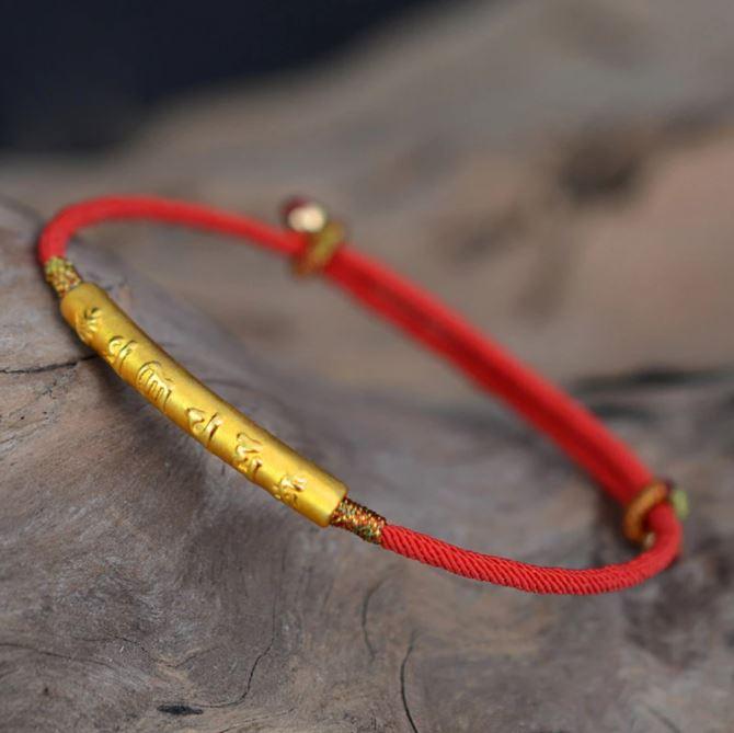 Le Mantra des Six Vrais Mots attire la chance, le cordon rouge sert de protection.