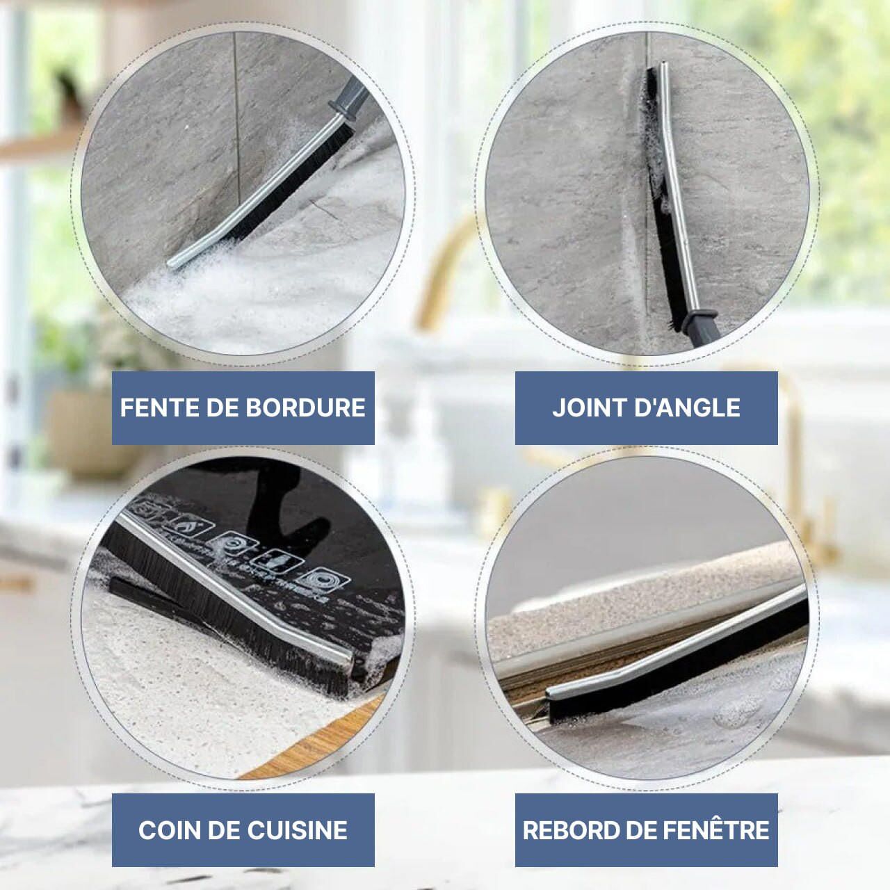 - Polyvalence: Parfaite pour une variété d’applications domestiques, la brosse peut être utilisée dans la cuisine, la salle de bain, et d’autres zones où les interstices collectent la poussière et la crasse.