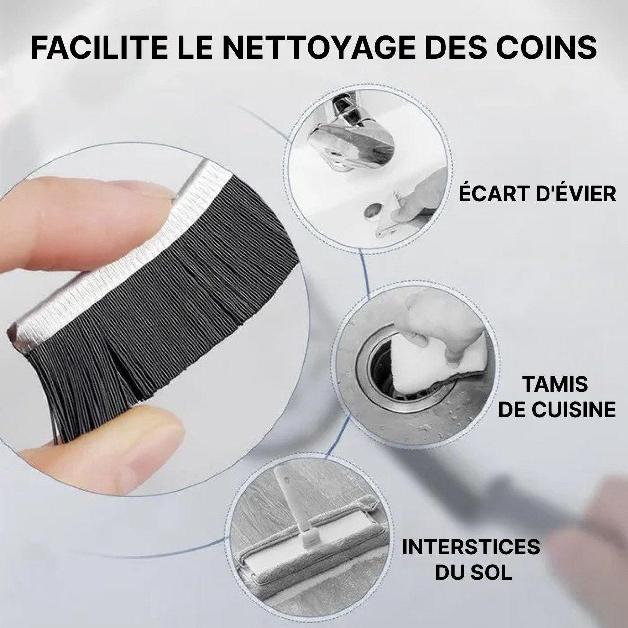- Design Spécialisé: Dotée de poils fins et rigides, cette brosse est capable de s’insérer dans les plus petits interstices pour un nettoyage efficace. Sa forme ergonomique permet de manipuler la brosse avec aisance et précision.