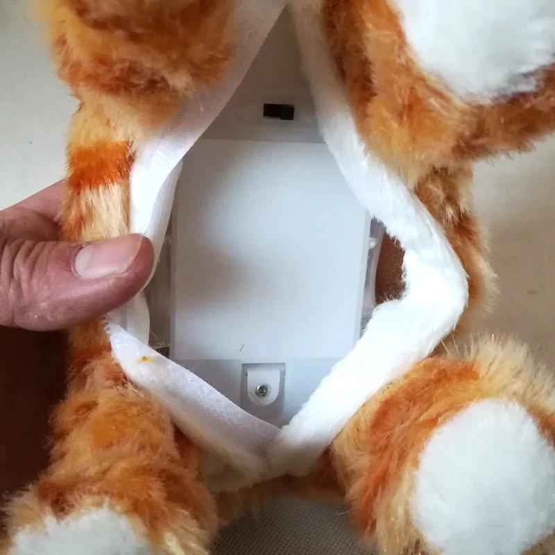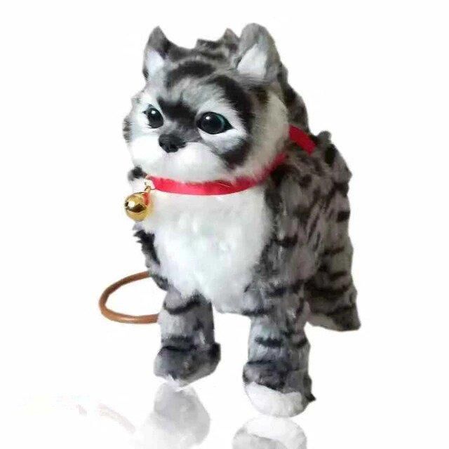 Ce chat magique interagit avec l’enfant quand on appuie sur le petit coeur de sa laisse.
