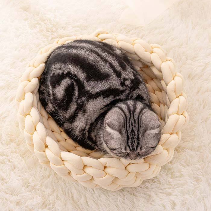 Comme les pattes des chats peuvent parfois se salir, nous recommandons de déposer un morceau de tissu, tel qu’une serviette ou une chemise, au fond du lit pour éviter qu’il n’y dépose de la boue ou des débris. Cette précaution présente un avantage supplémentaire : votre chat sera probablement plus enclin à utiliser le lit avec un morceau de tissu portant votre odeur (celle du chat) !