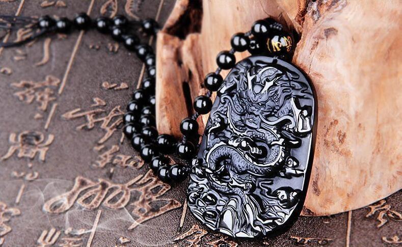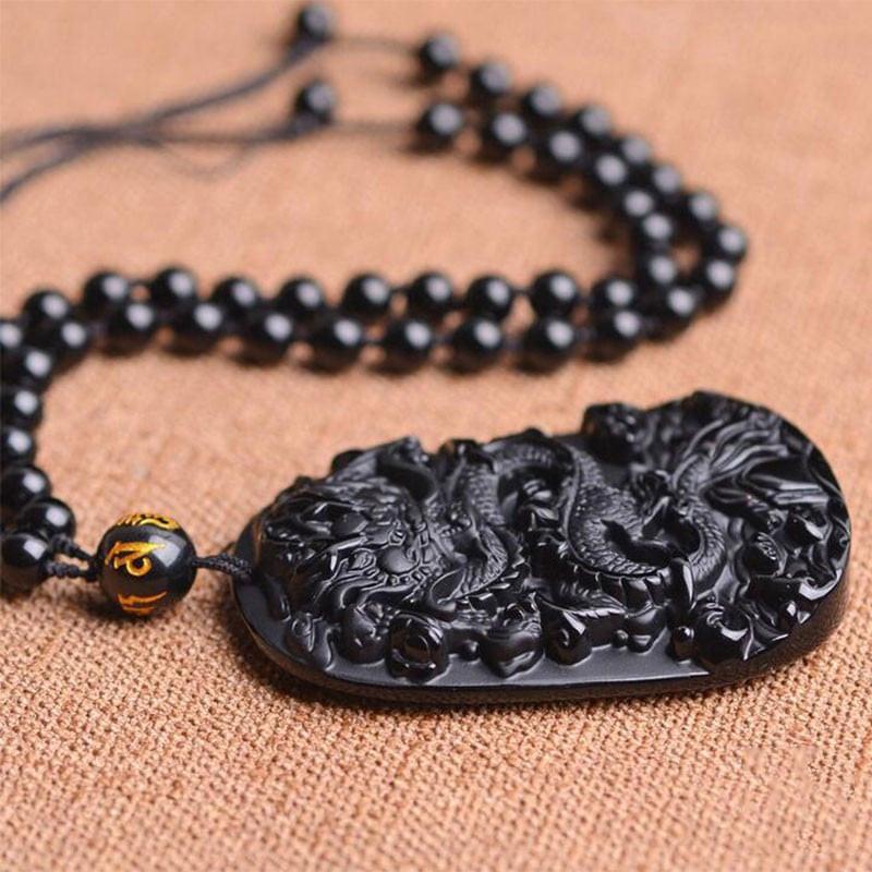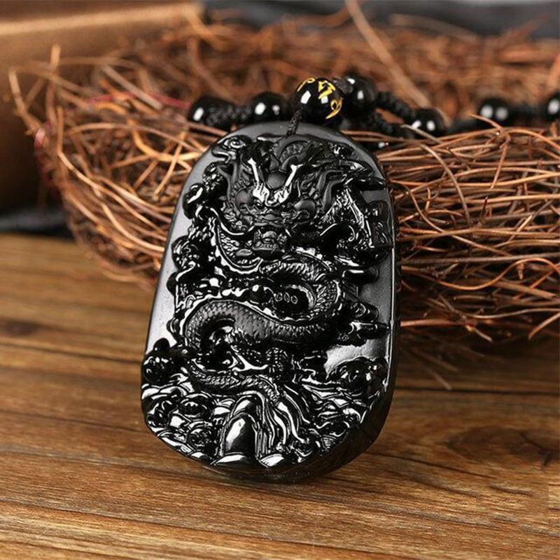 Ce collier pendentif dragon en obsidienne naturelle est fabriqué à la main par des Maîtres qualifiés.