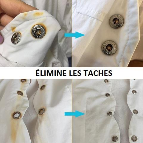 Enlève les taches de rouille ou d’autres produits métalliques, taches d’huile ou de graisse, etc. Gardez vos vêtements propres et comme neufs.