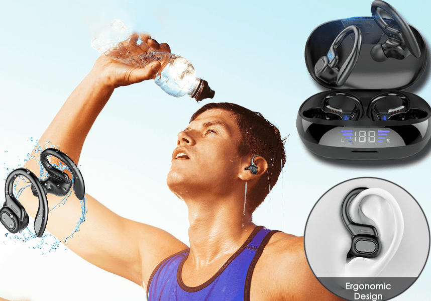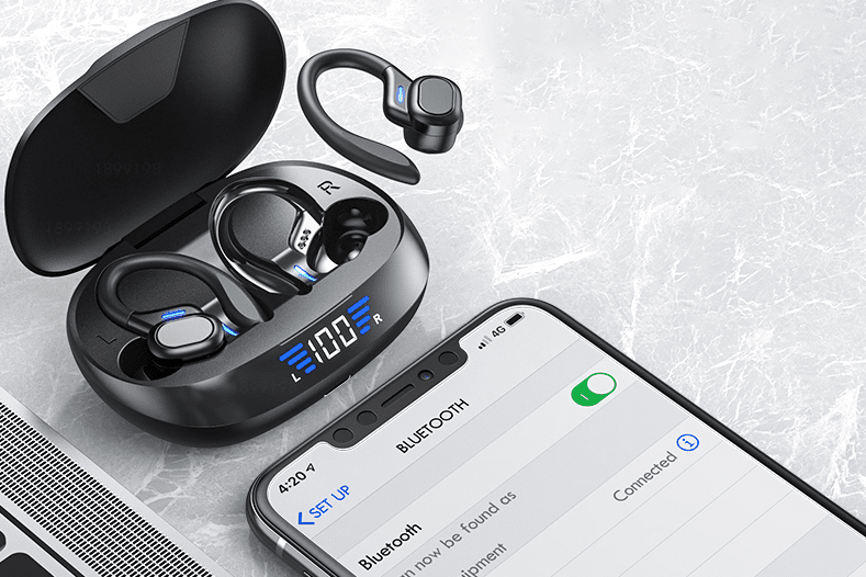 La conception ergonomique de nos écouteurs assure un maintien parfait et un confort optimal, même pendant les mouvements les plus actifs. Les crochets d’oreille en silicone maintiennent les écouteurs en place sans causer de fatigue. De plus, ils sont faciles à utiliser : la connexion est automatique, et vous pouvez passer en mode mono ou stéréo en retirant un ou deux écouteurs. L’étui de chargement offre une autonomie de 24 heures, avec une charge rapide d’une heure pour une utilisation prolongée.