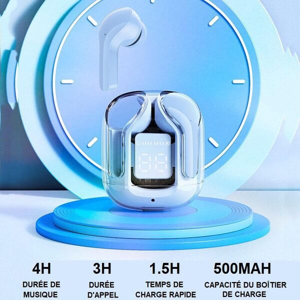 Dotés de la dernière technologie Bluetooth, ces Écouteurs Sans Fil Pour iPhone Et Android  offrent une connexion stable et rapide avec votre appareil, assurant une transmission sans perte pour une qualité sonore supérieure. Profitez de basses profondes, de médiums clairs et d’aigus cristallins grâce à leurs haut-parleurs haute performance. Que vous soyez en train de regarder un film, d’écouter de la musique ou en appel, attendez-vous à une expérience sonore immersive sans précédent.