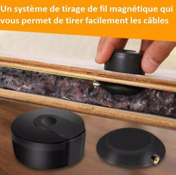 Le Dispositif De Guidage Magnétique peut passer à travers des trous de différentes tailles. Cette conception innovante permet de faire passer le câble dans les espaces clos, à travers l’isolation et autres obstacles. Tirez le câble jusqu’à un point d’accès.