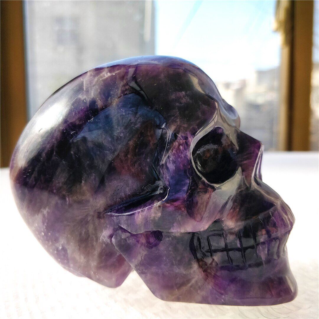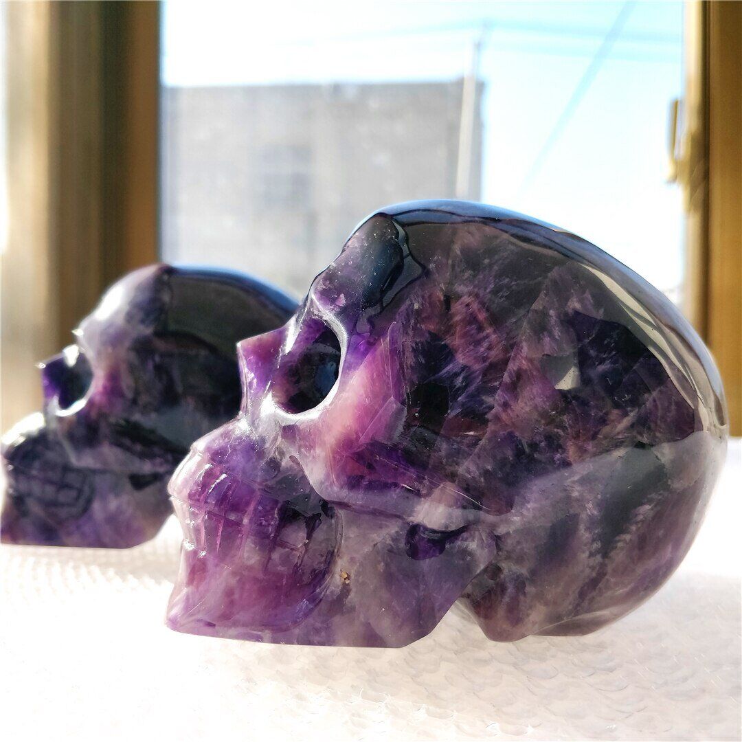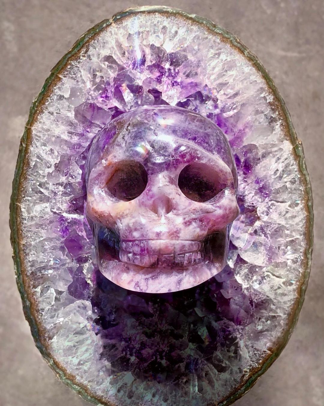 Une nouvelle addition magnifique à votre coin de cristal à la maison. Cet étonnant crâne de cristal est sculpté à la main dans de l’améthyste naturelle et poli pour lui donner un éclat impeccable. Ce cristal envoûtant de couleur violette est connu pour ses propriétés curatives, notamment pour apporter un sentiment de tranquillité à l’esprit, vous protéger des pensées négatives et prévenir les rêves désagréables. Ce crâne de cristal d’améthyste aide à éliminer les blocages dans votre chakra couronne et est idéal pour méditer avec ou pour utiliser dans votre grille de cristal.