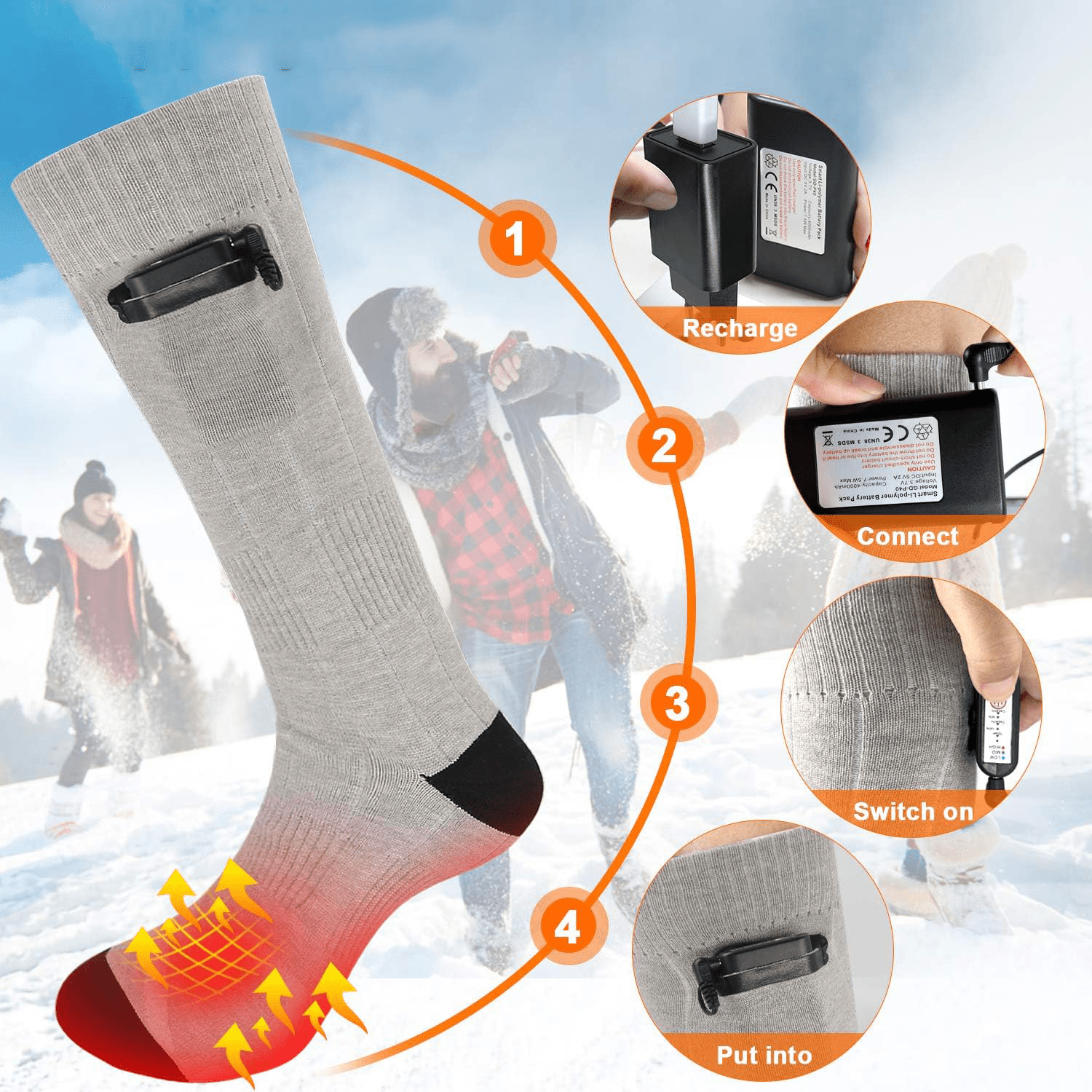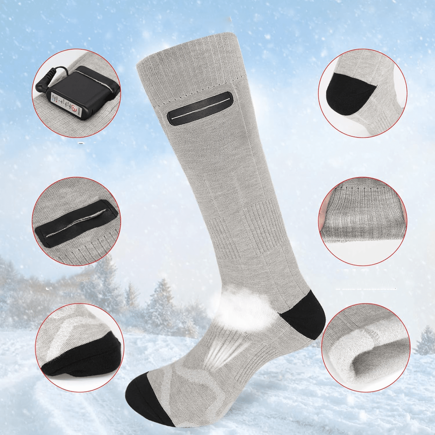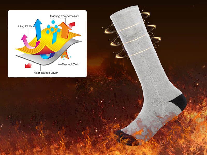 Ces chaussettes de haute technologie sont dotées d’un câblage alimenté par batterie qui chauffe à votre guise, gardant vos pieds bien au chaud. Elles fournissent non seulement une chaleur à long terme pendant les sports de plein air, mais vous permettent également de réchauffer vos pieds froids à long terme pendant l’hiver froid et d’éviter les pieds arthritiques et les raideurs articulaires.