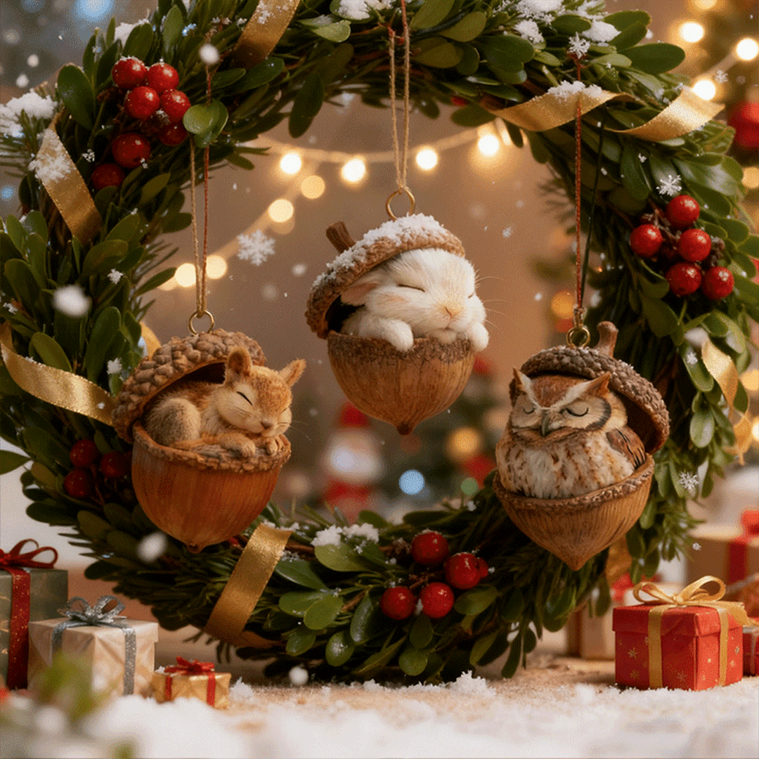 Et si cette année, votre sapin devenait un refuge pour de petits êtres des bois ? Les ornements iiipu « Rêves de Gland » apportent une touche douce et poétique à vos décorations de Noël. Inspirés des animaux de la forêt, ces petits personnages paisibles endormis dans leur coquille de gland ajoutent une ambiance pleine de calme et de sens.