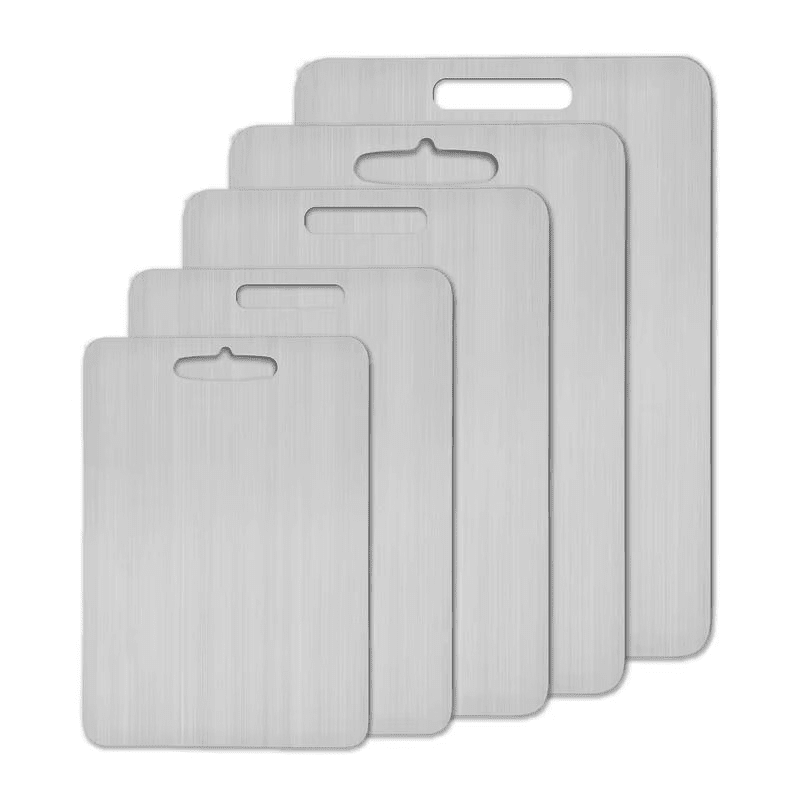 Katuchef – Planche à découper 100 % titaneDites adieu aux planches en plastique qui libèrent des microplastiques ou aux planches en bois qui accumulent bactéries et éclats.