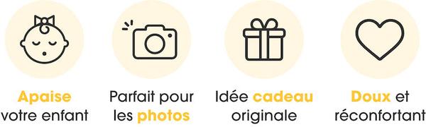 • Apaise votre enfant : Kazo apaise votre enfant, il est plus calme et détendu grâce à la texture agréable de la peluche.