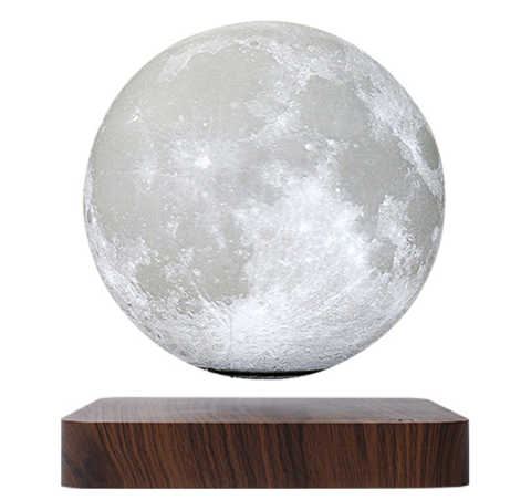 Grâce à la technologie ultramoderne de la lévitation, cette lampe lunaire flotte dans l’air et peut tourner en permanence.