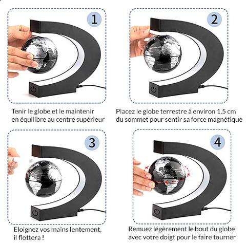 Belle planète bleue en lévitation totale. Elle flotte en rotation sur elle-même pour nous offrir un spectacle envoûtant et fascinant à la fois.