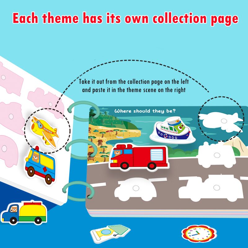 Il dispose d’un design simple, des stickers amovibles à velcros réutilisables offrant un divertissement sans fin. De plus, vous pouvez être tranquille en sachant que le livre est fabriqué avec du carton solide et épaissi, et sa surface est recouverte d’un film étanche à l’eau et à la poussière, le rendant résistant aux déchirures et aux dommages.