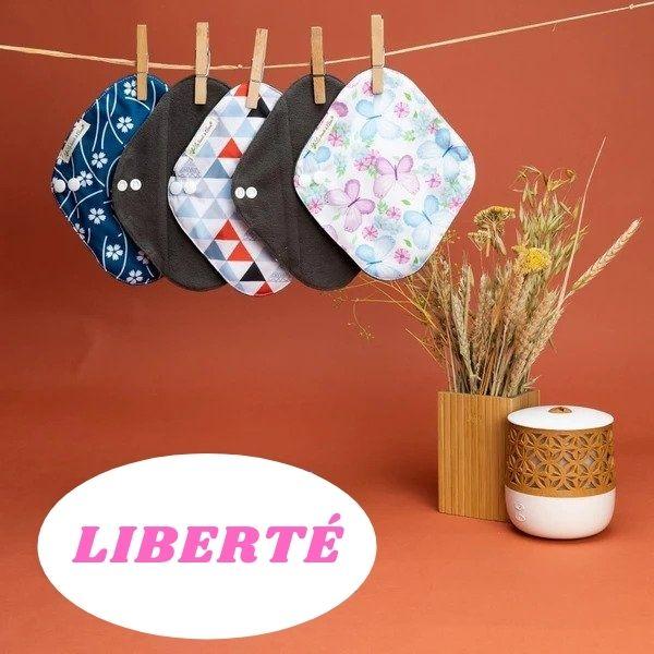– PACK LIBERTÉ : Lot de 5 protège-Slips (dimensions 20 cm x 18 cm | 2 couches). Efficace pour les premières règles (adolescentes); flux légers; spotting et les fuites urinaires faibles.