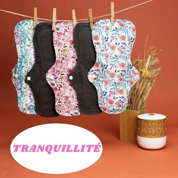 – PACK TRANQUILLITÉ : Lot de 5 serviettes (dimensions 33 cm x 18 cm | 3 couches). Idéal pour les flux très abondants; et les fuites urinaires plus importantes.