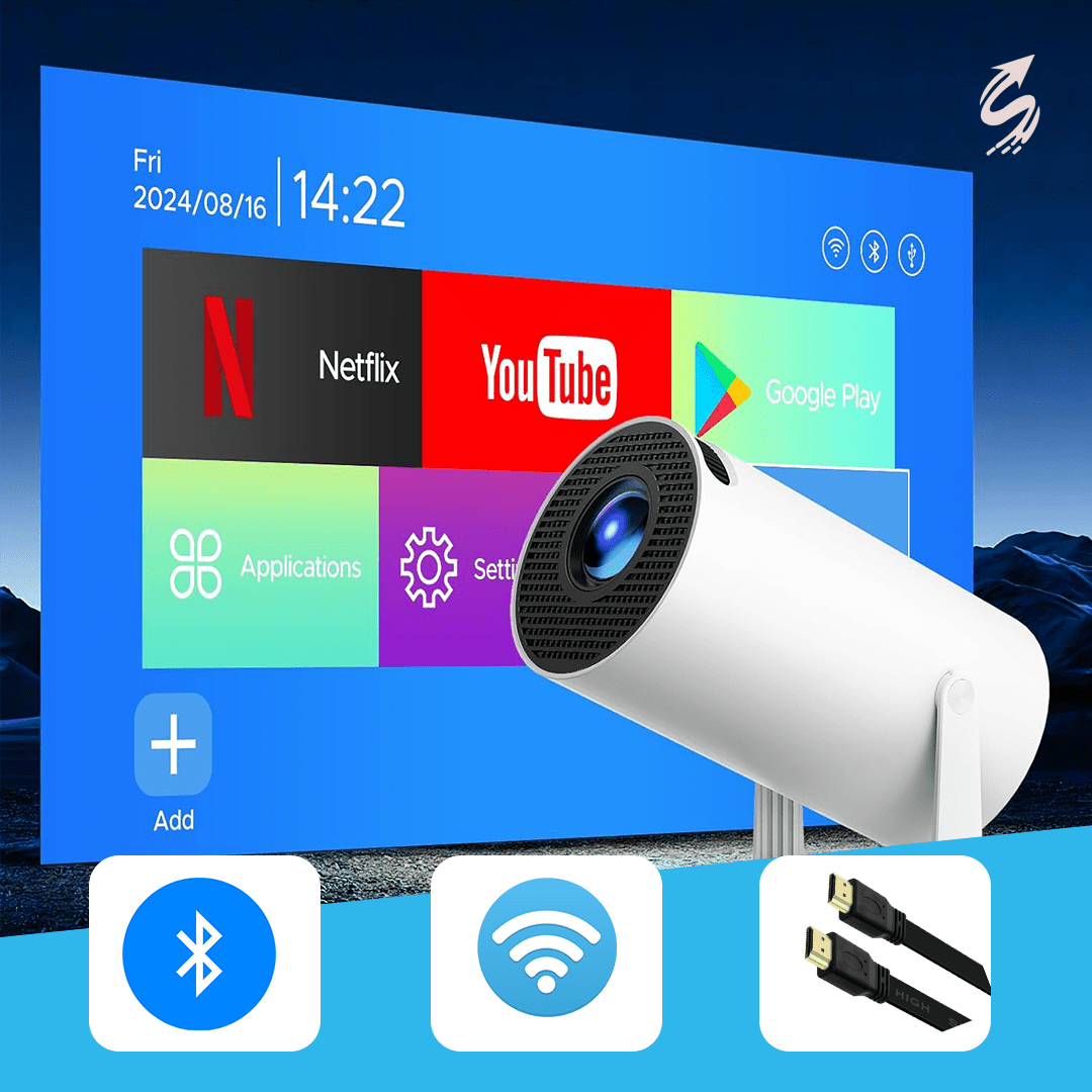 Ce projecteur fonctionne sous Android 14, donc toutes vos applis préférées (Netflix, YouTube, Prime Video, etc.) sont accessibles directement depuis l’interface.