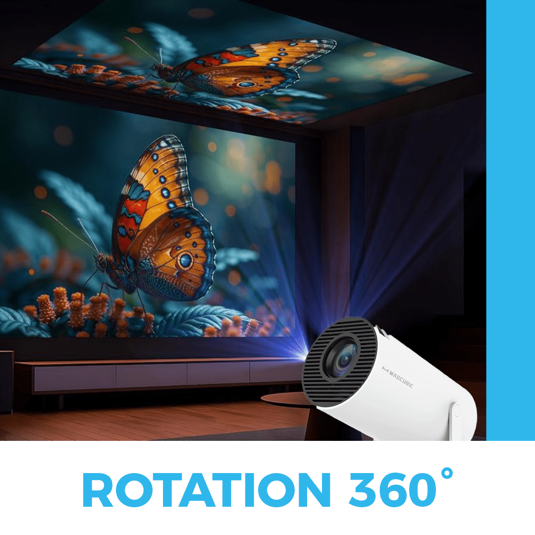Le HY300 Pro est pensé pour s’adapter à tous les espaces. Son corps rotatif à 180° permet de projeter au plafond, sur un mur ou sur un écran sans trépied particulier.