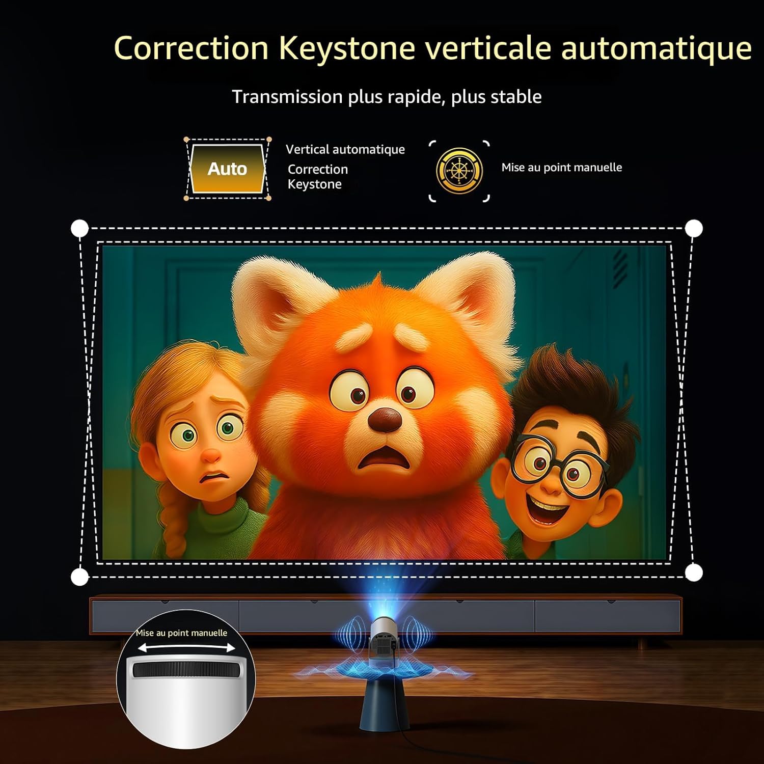 Le projecteur ajuste lui-même l’image grâce à sa correction trapézoïdale automatique, ce qui évite de passer du temps dans les réglages. Et si besoin, la mise au point manuelle aide à obtenir un cadrage parfait en quelques secondes.