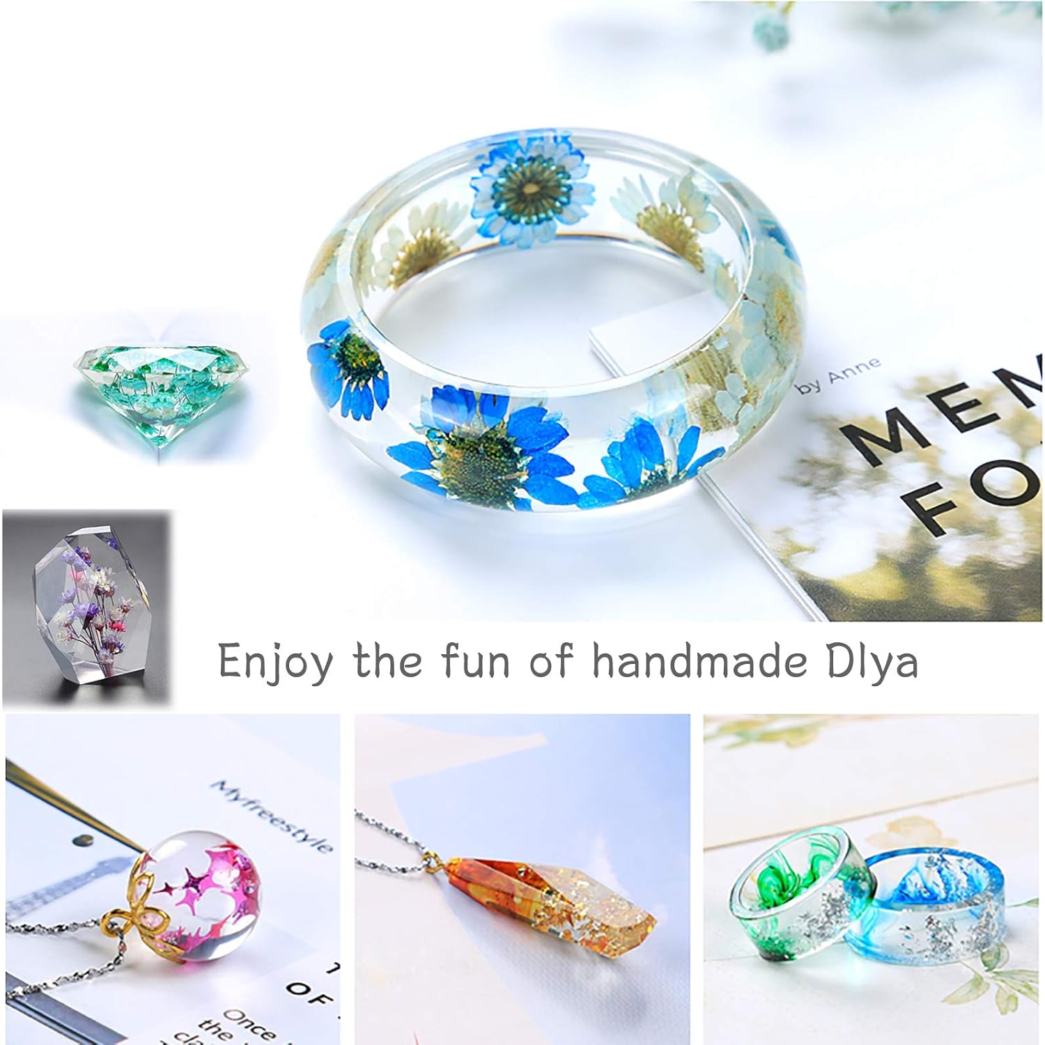 Vous obtiendrez 19 moule en silicone pour la fabrication de bijoux, 5 agitateur en plastique, 5 cuillères en plastique, 5 goutteurs en plastique jetables, 100 mini broches à vis en or, 100 mini-vis en argent broches, 1outil de forage (2 tête de forage), 48 paillettes de couleur, 1 * sac noir.