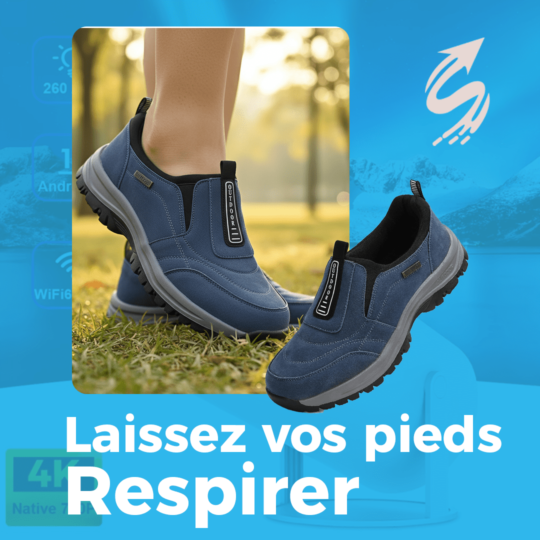 Avec les chaussures Orthoconfort, profitez de longues promenades sans ressentir de douleur. Leurs semelles amortissantes et leur design ergonomique réduisent les chocs et la pression sur les pieds, offrant un soutien continu à chaque pas. Que ce soit pour une journée active ou une longue balade, elles garantissent un confort durable et une sensation de légèreté, tout en prévenant les douleurs aux talons, à la voûte plantaire et aux articulations.
